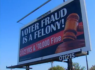 The most recent evidence of that shows up on 85 billboards in the Milwaukee area, many of them in low-income neighborhoods, proclaiming: “Voter Fraud is a Felony,” followed by the word, “3 ½ yrs & $1,000 fine.” Now, on Oct. 22, just two weeks before the election and following several weeks when the signs were clearly visible, Clear Channel — the company responsible — has decided to take them down. They bowed to citizen criticism, but the harm may have already been done in throwing fear into the hearts of many people confused about election procedures.