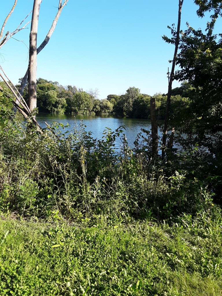 I was astounded to find this gem of a tiny pond along a park trail on a warm afternoon recently (photo at left). I had passed it dozens of time without stopping and looking at it. My oh my, what I had been missing! It seems like a swampy pond in the midst of a dense remote forest; yet, it sits less than 75 feet from one of Milwaukee’s busiest roadways.